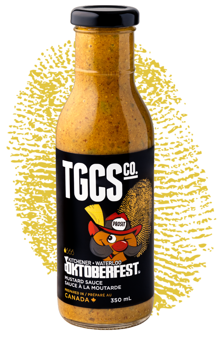 TGCS Co Oktoberfest Mustard Sauce - Official Mustard of Kitchener-Waterloo Oktoberfest - with a kick! Perfect to take your Bratwurst or Schnitzel to the next level, or for dunking your pretzel. Prosit!